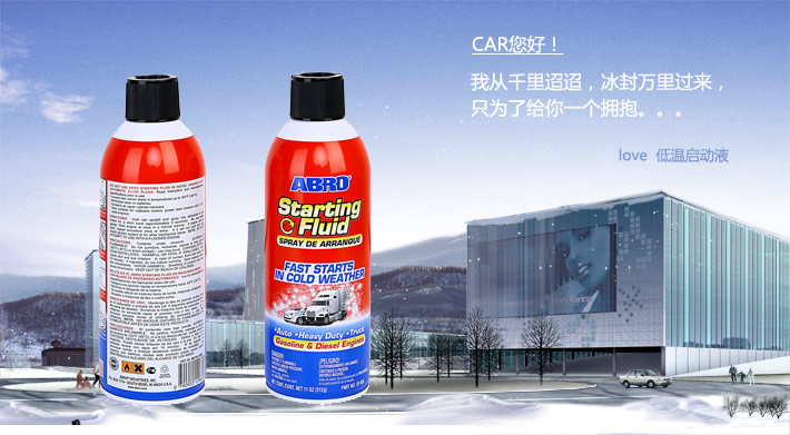 低温启动液具有易挥发、燃点低等特点,它可在恶劣气候条件下或所缸压力不足情况下,迅速平稳地启动发动机,有效防止因天气寒冷潮湿或气缸压力不足而过多损耗电瓶、马达及点火开关。